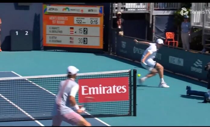 O lance que deixou o público e os comentaristas boquiabertos ocorreu durante a partida de duplas de Kittay, que jogava ao lado de seu ex-colega da Universidade da Carolina do Norte, Ryan Seggerman, contra a dupla de Kevin Krawietz e Neil Oberleitner. Em um momento crítico do jogo, Kittay demonstrou uma agilidade impressionante ao correr para interceptar uma bola de backhand com ângulo acentuado, lançada por Krawietz. Sua resposta foi um backhand cruzado que, de maneira surpreendente, não só passou 'por fora' da rede, mas ricocheteou na lateral do próprio poste da rede e aterrissou limpa na quadra de duplas, transformando-se em um winner indiscutível. Esta sequência de eventos desafia as leis da física e da probabilidade no tênis, marcando um feito verdadeiramente sem precedentes.